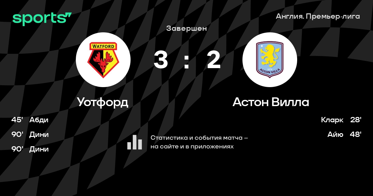 Гомес - Анья, Бритос, Кэткарт, Паредес - Хурадо, Суарес, Уотсон, Абди - Игало, ДиниЗапасные: Пантилимон, Аке, Ньом, Предль, Гедиура, Амрабат, Бергейс