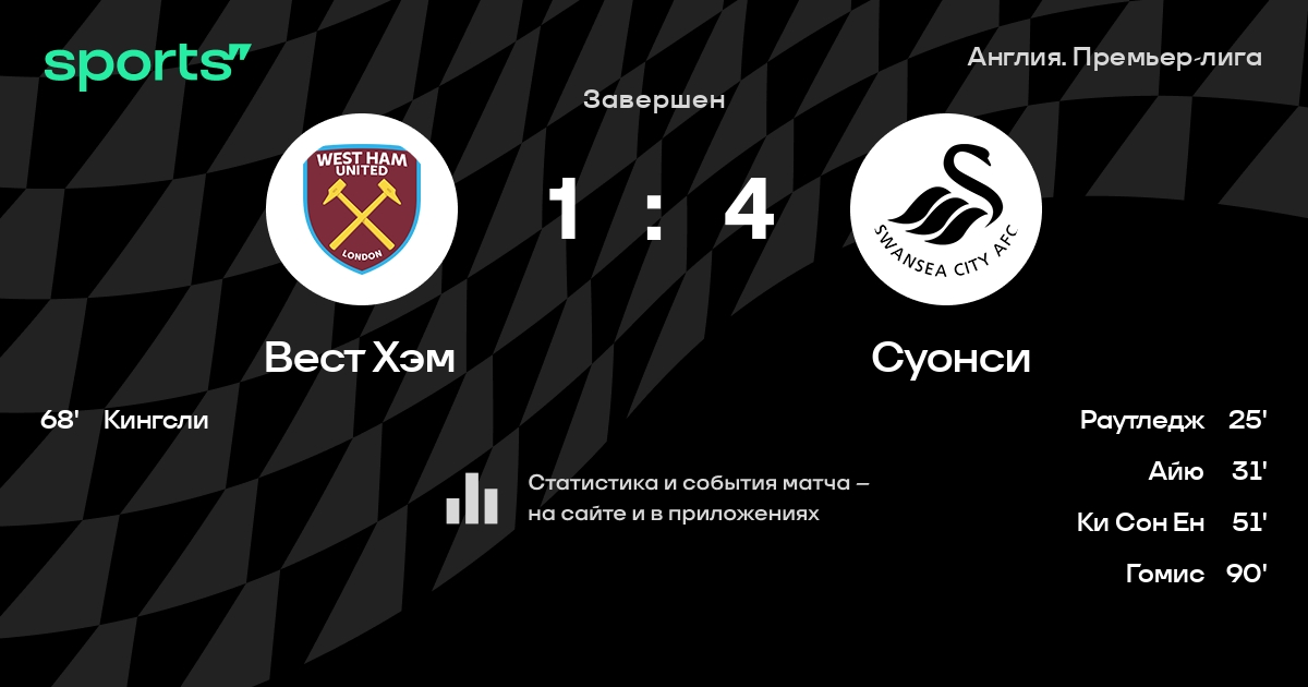 Фабианьски - Кингсли, Амат, Фернандес, Нотон - Ки Сон Ен, Корк, Фер - Раутледж, Барроу, А. АйюЗапасные: Нордфельдт, Ранхель, Бриттон, Фултон, Эмнес, Гомис, Горре