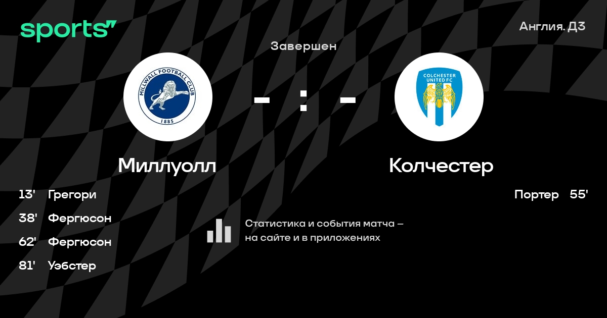 Трансляция Миллуолл - Колчестер
