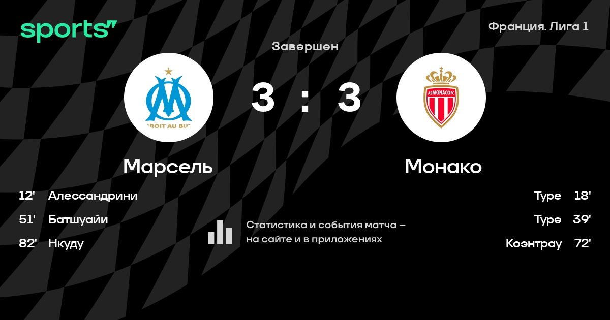 Чемпионат Франции. 15-й тур. «Марсель» – «Монако» – 3:3 и другие результаты