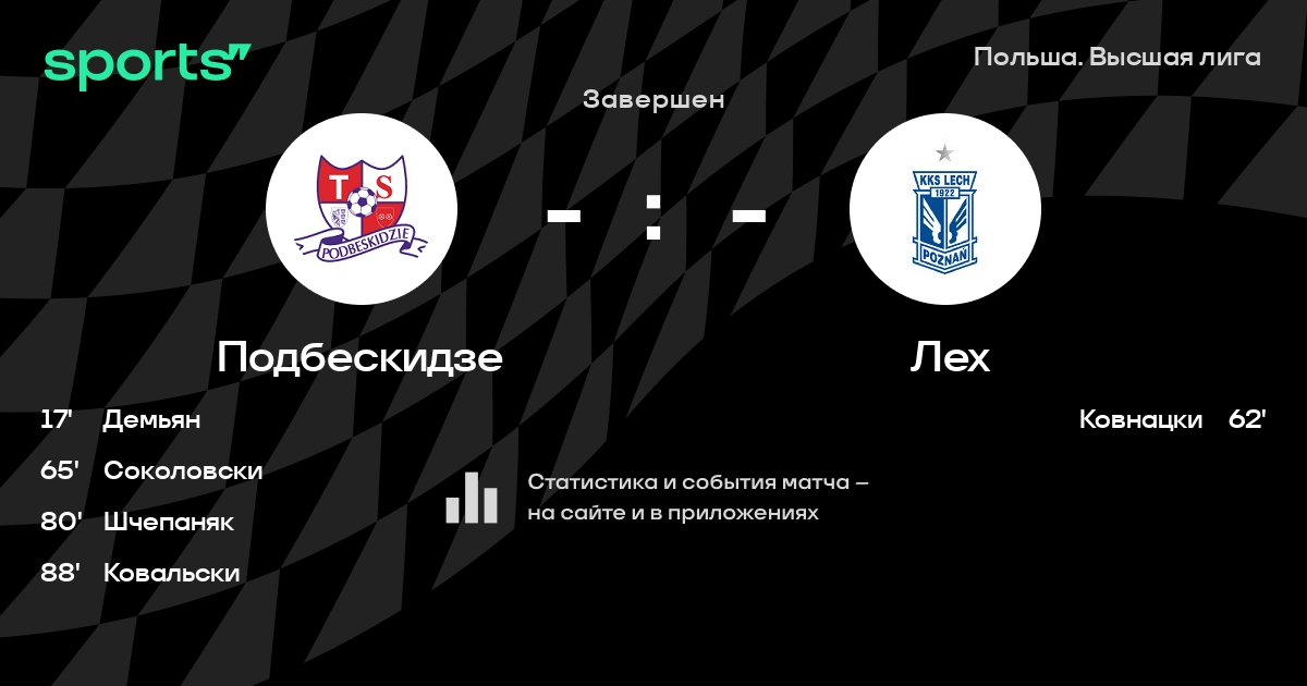 Зубас - Ковальски, Муйта, Пиачек, Барановски - Соколовски, Хмель, Дея, Можджень - Демьян, ШчепанякЗапасные: Качмарек, Аду-Кваме, Колчак, Веретило, Слобода, Тарновски, Штефаник