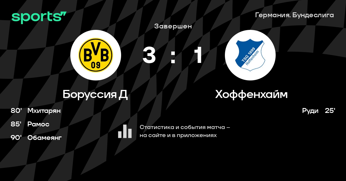 Бюрки - Шмельцер, Бендер, Суботич, Пишчек - Шахин, Вайгль, Ройс, Кагава, Мхитарян - ОбамеянгЗапасные: Вайденфеллер, Дурм, Гинтер, Кастро, Гюндоган, Ляйтнер, Рамос
