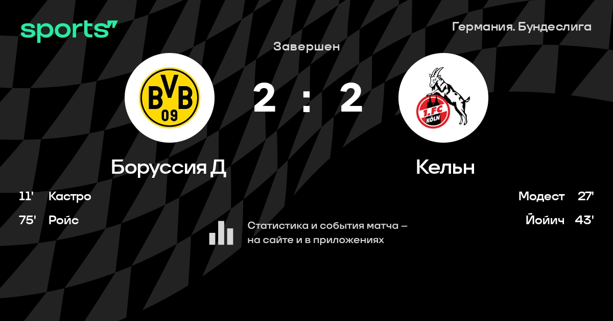 Бюрки - Шмельцер, Хуммельс, Папастатопулос, Бендер - Кастро, Вайгль, Ройс, Кагава, Обамеянг - РамосЗапасные: Вайденфеллер, Дурм, Гинтер, Пишчек, Горенц-Станкович, Ляйтнер