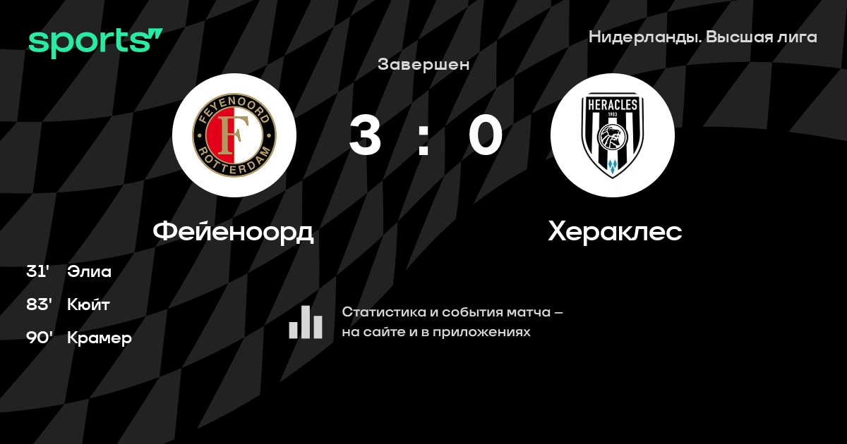 Чемпионат Голландии. 15-й тур. «Фейеноорд» рагромил «Хераклес» и другие результаты