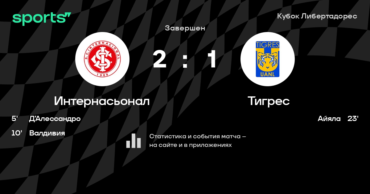 Алиссон - Жеферсон, Алан, Эрнандо, Виллиам - Родриго Доурадо, Арангис, Валдивия, Д’Алессандро - Лопес, НилмарЗапасные: Муриэл, Фрейтас, Андерсон, Моура, Витиньо, Эдуардо Саша