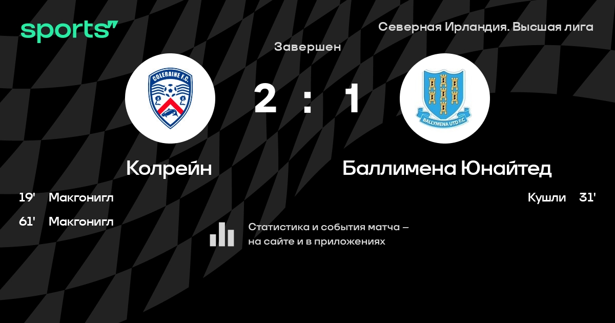 Колрейн - Баллимена Юнайтед: положение в турнире