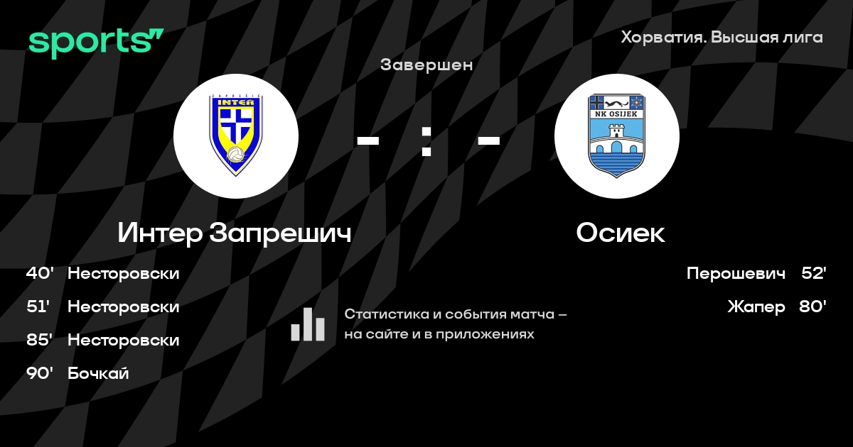 Трансляция Интер Запрешич - Осиек