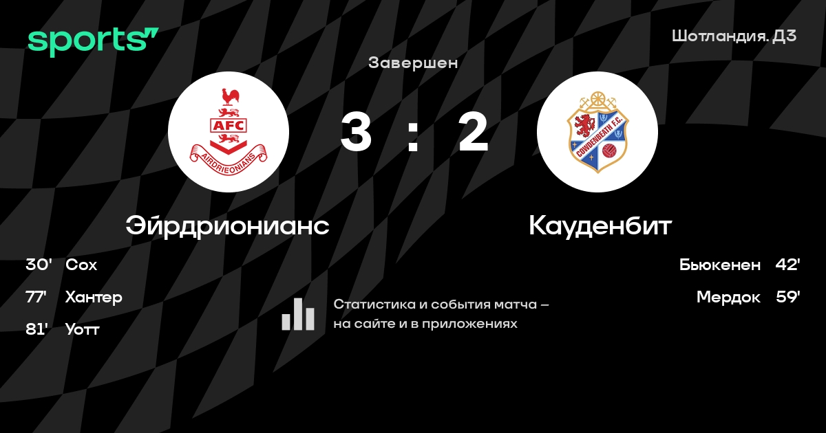 «Хартс» – «Кауденбит». Нападающий хозяев Зефейк оформил хет-трик за четыре минуты