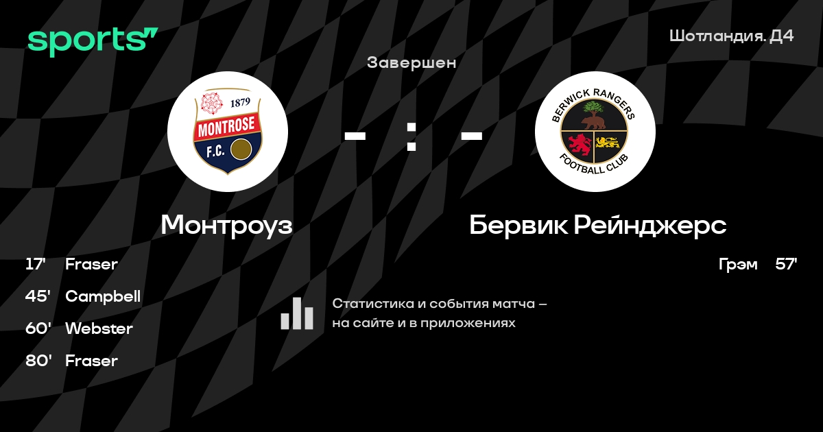 Salmon - Pascazio, Харвуд, Steeves - Webster, Masson, McCord, Ferguson - Campbell, Johnston, FraserЗапасные: Butter, Reoch, Malin, Mallagaray, Reid, McLeod, Milne