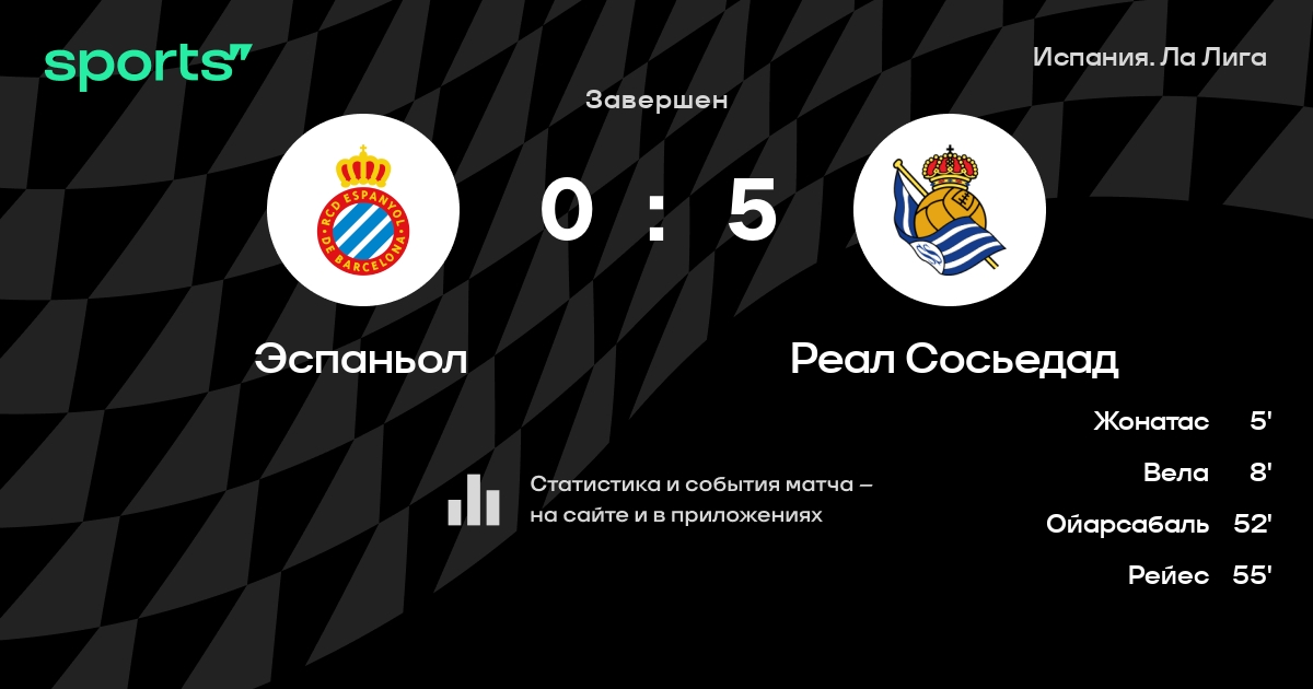 Чемпионат Испании. «Эспаньол» уступил «Реалу Сосьедад» и другие результаты
