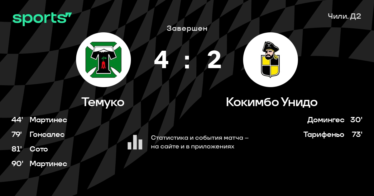 Гамональ - Пардо, Гутьеррес, Асеваль - Sanhueza Medel, Пинья, Гонсалес - Гомес, Канио, Домингес, МартинесЗапасные: Martínez, Сото, Паес, Диас, Гутьеррес, Арос, Комба