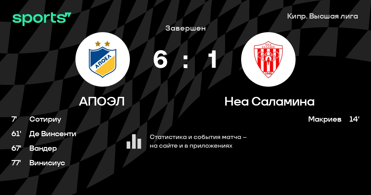 | 1 | АПОЭЛ | 36 | 26 | 5 | 5 | 91 | 26 | +65 | 83 | ||