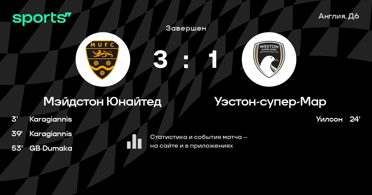 Мэйдстон Юнайтед - Уэстон-супер-Мар: статистика матча