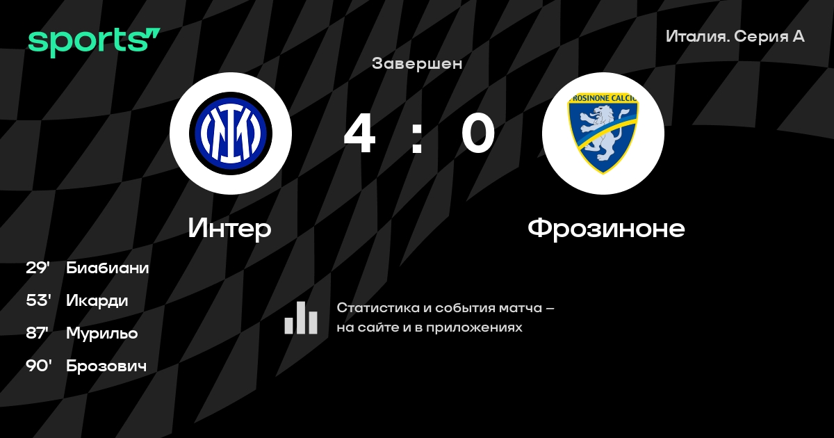 Ханданович - Теллес, Мурильо, Миранда, Нагатомо - Мело, Кондогбиа, Ляйич, Биабиани, Йоветич - ИкардиЗапасные: Берни, Каррисо, Д`Амброзио, Медель, Монтойя, Жезус, Раноккия, Брозович, Ньюкури, Гуарин, Паласио, Перишич