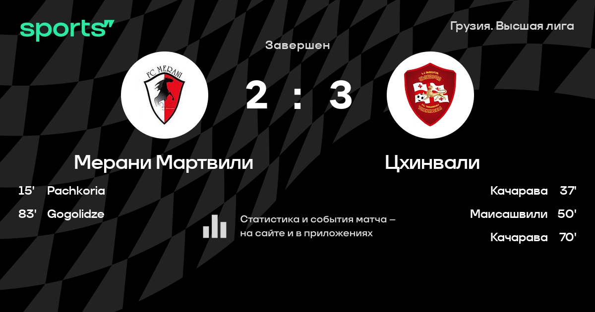 | 7 | Цхинвали | 30 | 12 | 10 | 8 | 51 | 36 | +15 | 46 | ||