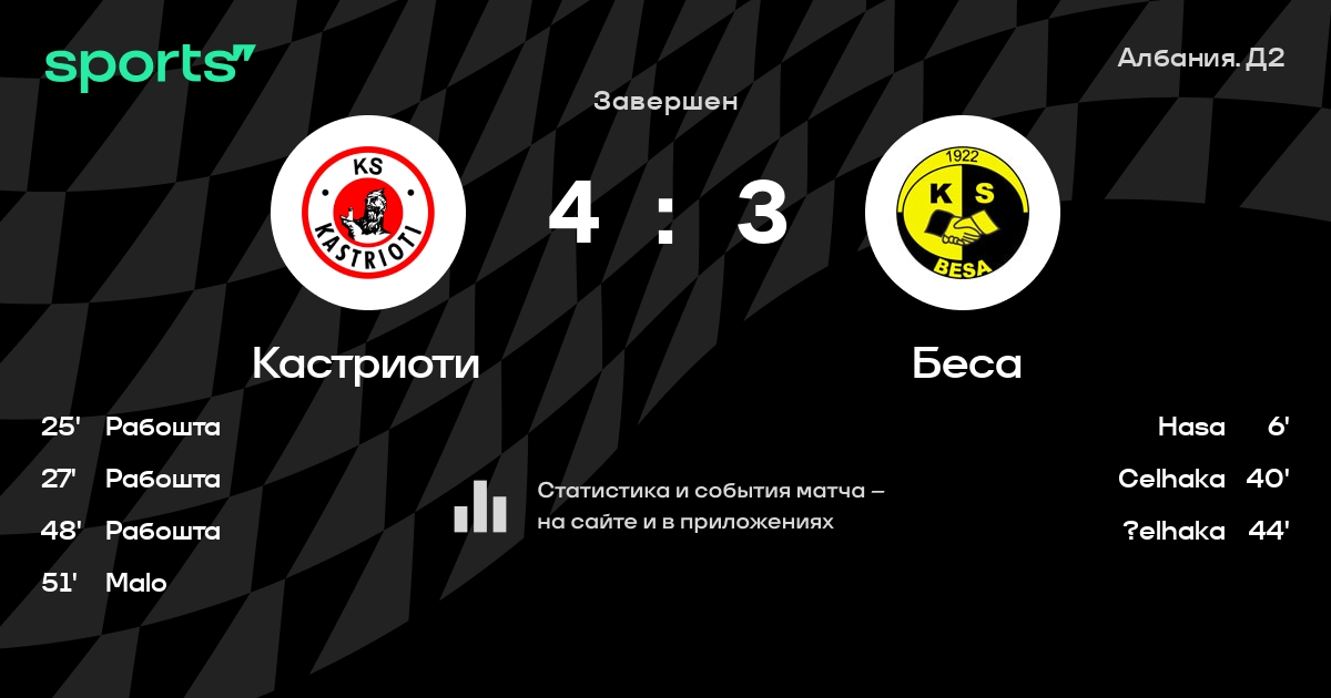Лямелари - Домгени, Доку, Якупи, Dosti - Чутра, Цаца, Koreshi - Рабошта, Malo, ХюсаЗапасные: Spahija, Rustami, Незири, Xhaferri, Djarmati, Tali, Kozmaj