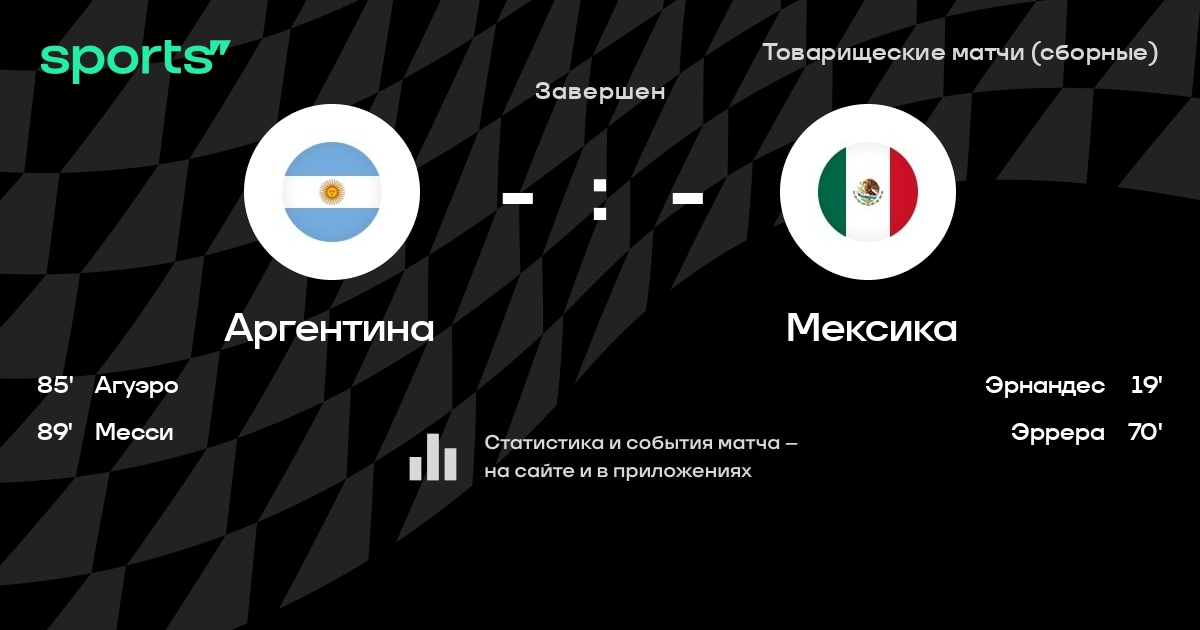 Гусман - Рохо, Отаменди, Демичелис, Ронкалья - Маскерано, Банега, Гаго - Корреа, Тевес, МессиЗапасные: Ромеро, Родригес, Фунес Мори, Мас, Каско, Перейра, Краневиттер, Ламела, Гайтан, Агуэро, Лавесси