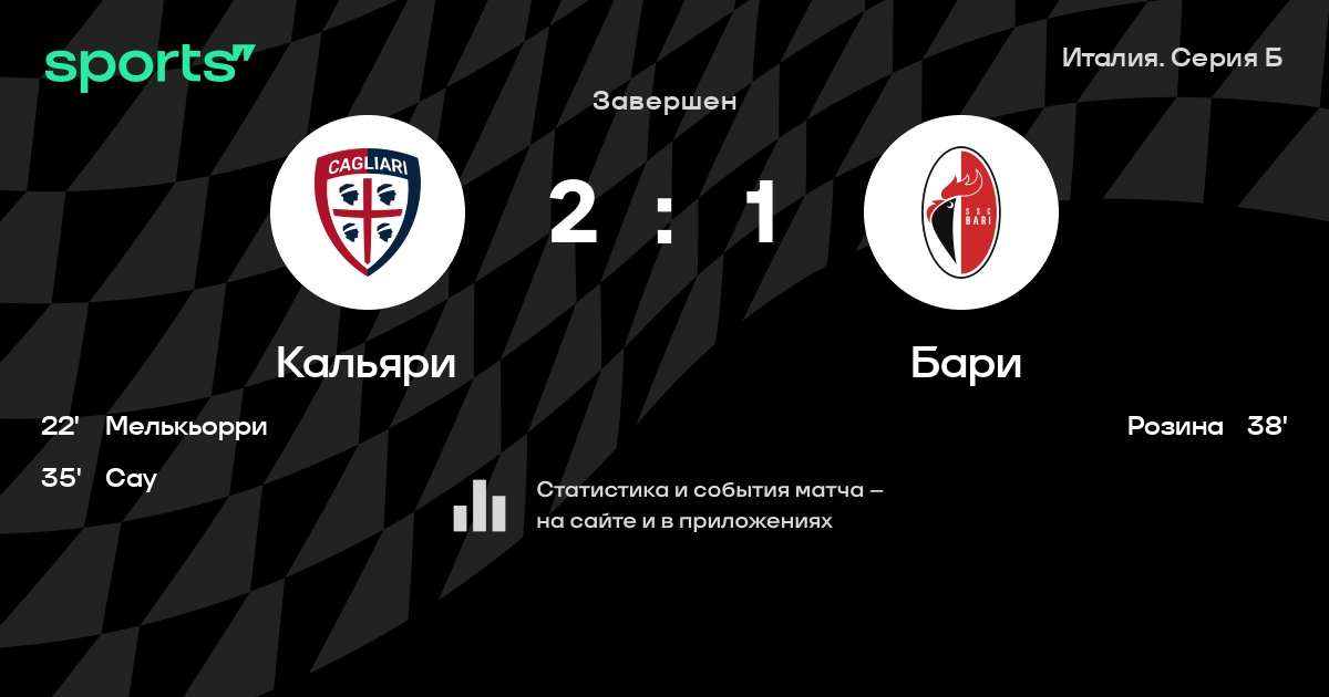 Сторари - Пизакане, Саламон, Чеппителли, Бальцано - Мунари, Фоссати, Тельо - Фариас, Сау, МелькьорриЗапасные: Краньо, Крайнц, Баррека, Мурру, Дейола, Барелла, Жоао Педро, Джаннетти, Черри