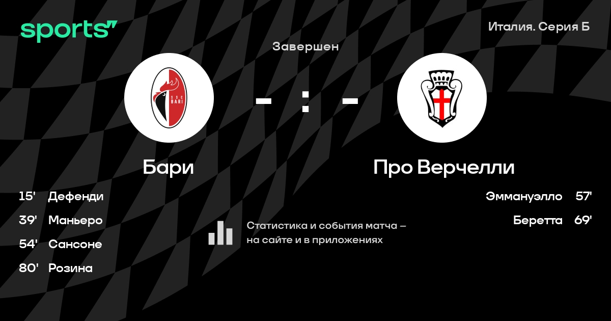Микаи - Джемити, Донкор, Тонуччи, Рада - Деци, Ромици, Дефенди - Маньеро, Розина, СансонеЗапасные: Гуарна, Сиссоко, Минала, Ладзари, Генцоглу, Якимовски, Пушкаш, Боатенг