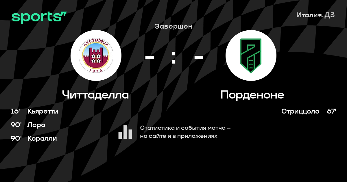 Tomei - Боньотти, Стефани, Мартин, Ингеньери - Мандорлини, Паза, Педерцоли - Filippini, Стриццоло, БерреттониЗапасные: De Toni, Talin, Де Агостини, Marchi, Castelletto, Buratto, Каттанео, Бельтраме, Ramadani, Berardi, Valente, Мартиньяго