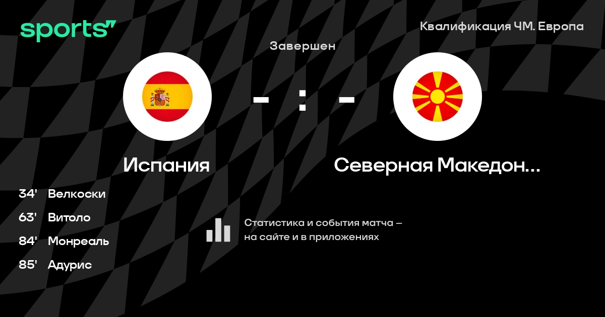 Де Хеа - Монреаль, Начо, Бартра, Карвахаль - Алькантара, Бускетс, Коке - Сильва, Мората, ВитолоЗапасные: Асенхо, Мартинес, Аспиликуэта, Эррера, Мата, Серджи Роберто, Иско, Аспас, Адурис, Кальехон, Нолито
