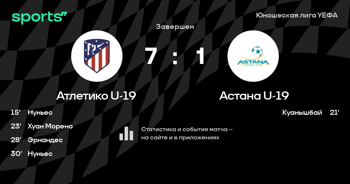 Трансляция Атлетико U-19 - Астана U-19