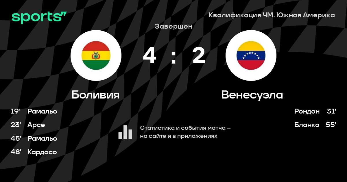 Вака - Моралес, Мартелли, Сентено, Сааведра - Лисио, Кардосо, Вейсага, Чумасеро, Арсе - РамальоЗапасные: Лампе, Самора, Эгино, Арраскайта, Санчес, Асоге, Гутьеррес, Моралес, Галиндо, Вака, Дук