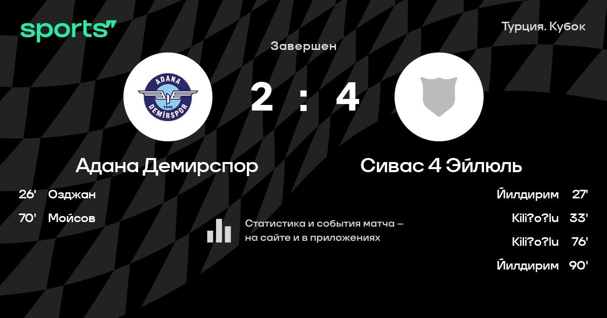 Адана Демирспор - Сивас 4 Эйлюль: статистика матча