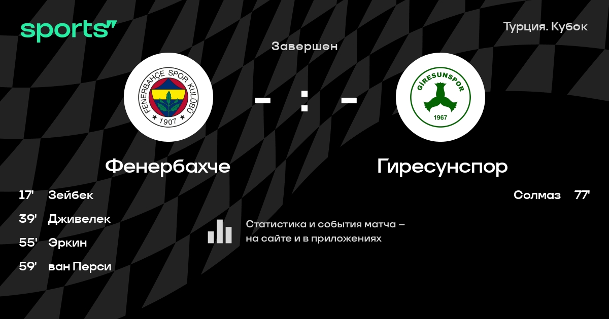 Фрейтас - Эркин, Генюль, Бруну Алвеш, Кадлец - Дживелек, Диего, Топуз, Туфан, Зейбек - ван ПерсиЗапасные: , Озбайраклы, Кьер, Калдырым, Фернандао, Маркович