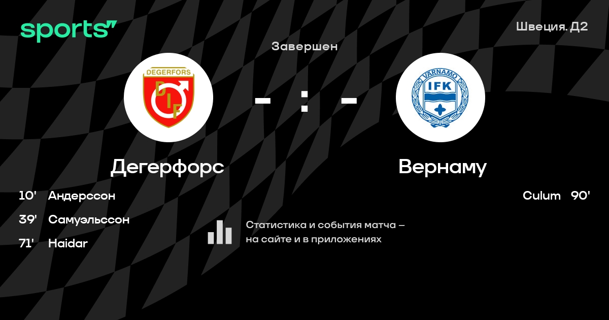 Рашид - Энгстрем, Claesson, Энглунд, Andersson, Нильссон, Winsth - Сван, Юханссон - Cederqvist, ЖебалиЗапасные: Андерссон, Widén, Kulovac, Palmquist, Nkuru, Hussein, Culum