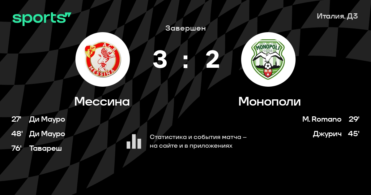 Addario - Бурциготти, Де Вито, Barilaro, Мартинелли - Giorgione, Форнито, Baccolo, Ди Мауро - Salvemini, LeonettiЗапасные: Берарди, Frabotta, Fusca, Russo, Biondo, Barraco, Masocco, Zanini, Тавареш, Ашоне