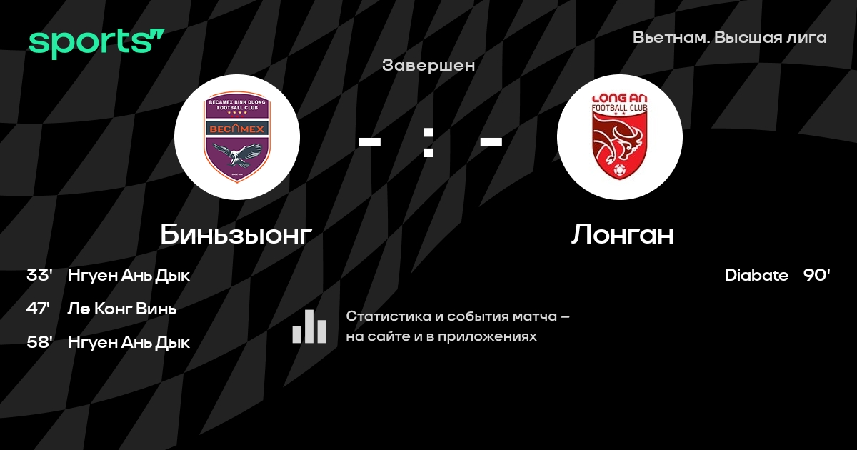 Нгуен Тьен Ань - Фам Тхань Кыонг, Во Нят Тан, Хюинь Куанг Тхань, Чан Ти Конг - Фан Ван Тай Эм, Хюинь Тан Тай, dos Santos Lima, Нгуен Тай Лок, Нгуен Тхань Хай - DiabateЗапасные: Нгуен Тьен Фонг, Trần, Фам Хоанг Лам, Phan, Чан Хоай Нам, Чан Бао Ань, Зыонг Ань Ту