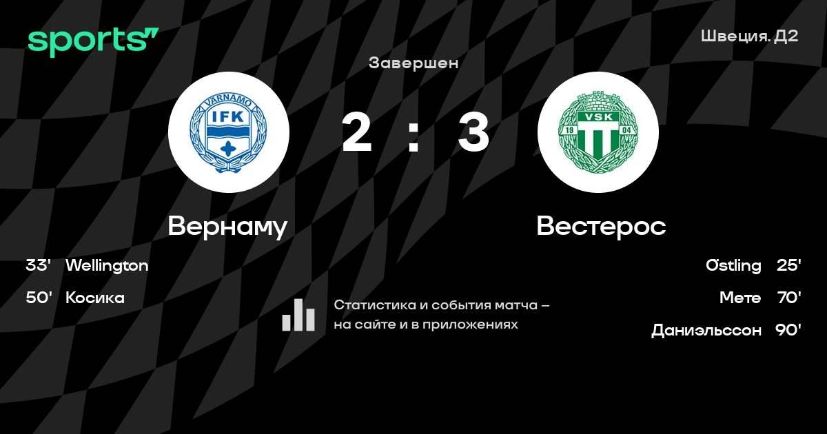 Нильссон - Palm, Ferman, Claesson, Энглунд - Садику, Zlojutro, Халили, Классон, Косика - WellingtonЗапасные: Halvorsen, Diawudeen, Winsth, Olofsson, Svensson, Ferizi, Danneman