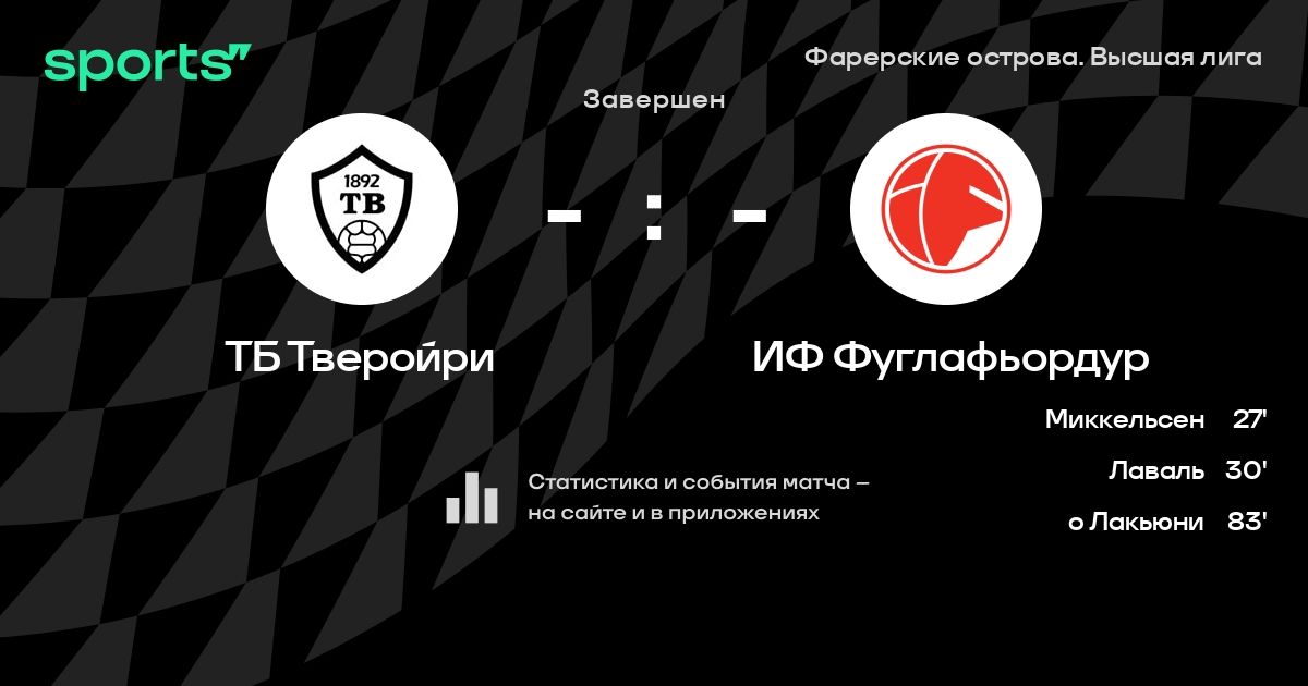 7 | ТБ Тверойри | 27 | 7 | 6 | 14 | 31 | 48 | -17 | 27 | ||