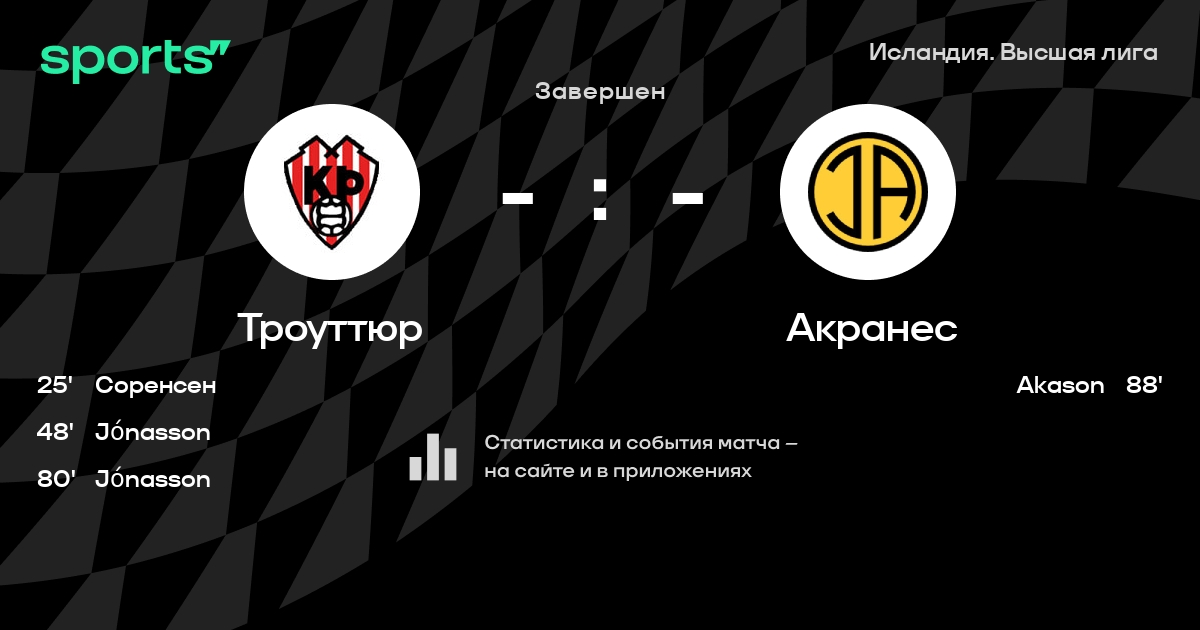 Петюрссон - Акофф, Соренсен, Стурлусон, Björnsson, Фридрикссон, Hallsson - Альбертссон, Олафссон, Pálmason - JonassonЗапасные: Sigurbjornsson, Green, Ólafsson, Heidarsson, Borges, Иллюгасон, Стефанссон