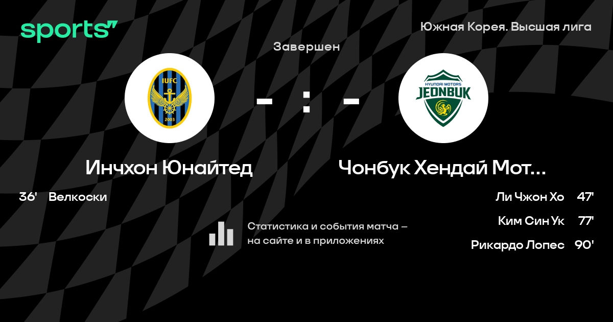 Трансляция Инчхон Юнайтед - Чонбук Хендай Моторс