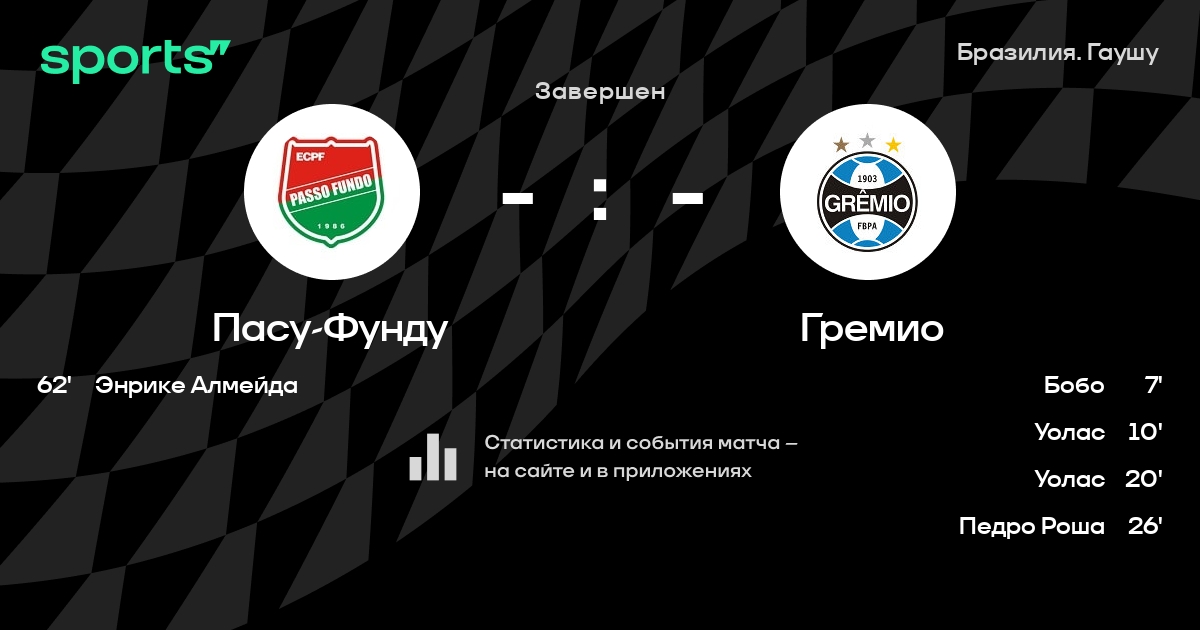 Гроэ - Жеромел, Эрмес, Фред - Линкольн, Майкон, Рамиро, Уолас - Бобо, Педро Роша, ФернандиньоЗапасные: Грасси, Брессан, Яго, Кайо, Эдиньо, Батиста, Энрике Алмейда