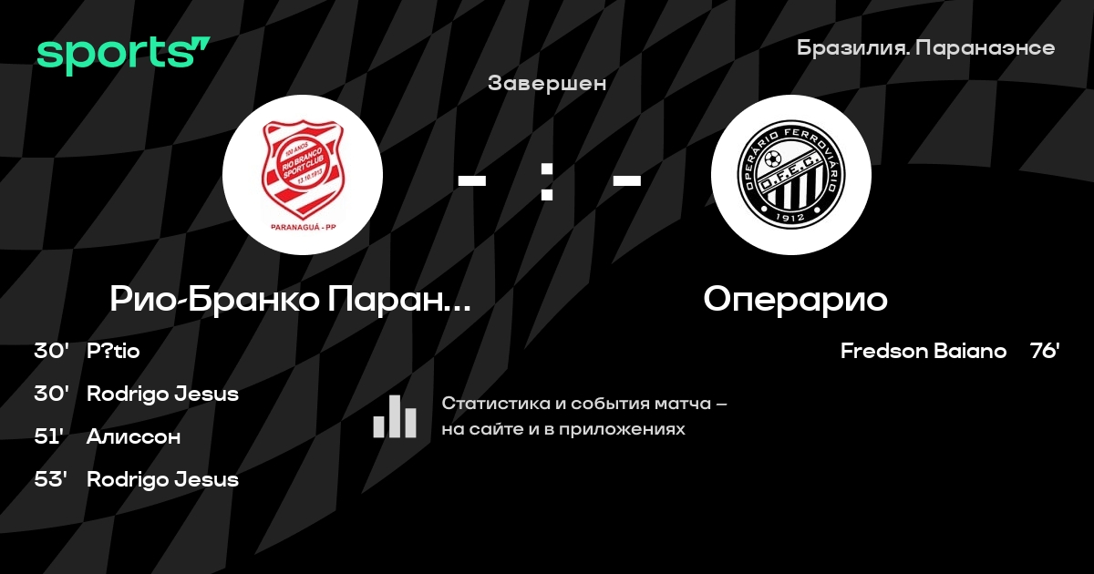 Рио-Бранко Паранагуа – Операрио: коэффициенты