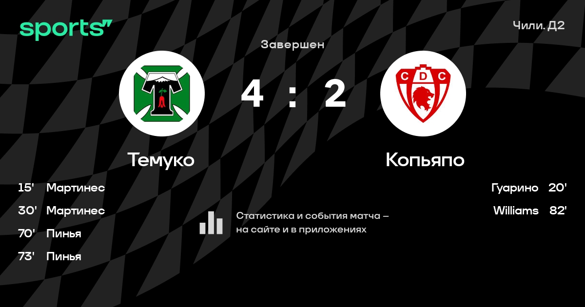 Гамональ - Вергара, Пардо, Асеваль - Sanhueza Medel, Пинья, Гонсалес, Диас - Комба, Мартинес, КаниоЗапасные: Martínez, Bustos Sánchez, Гутьеррес, Арос, Кампос Лопес, Гомес