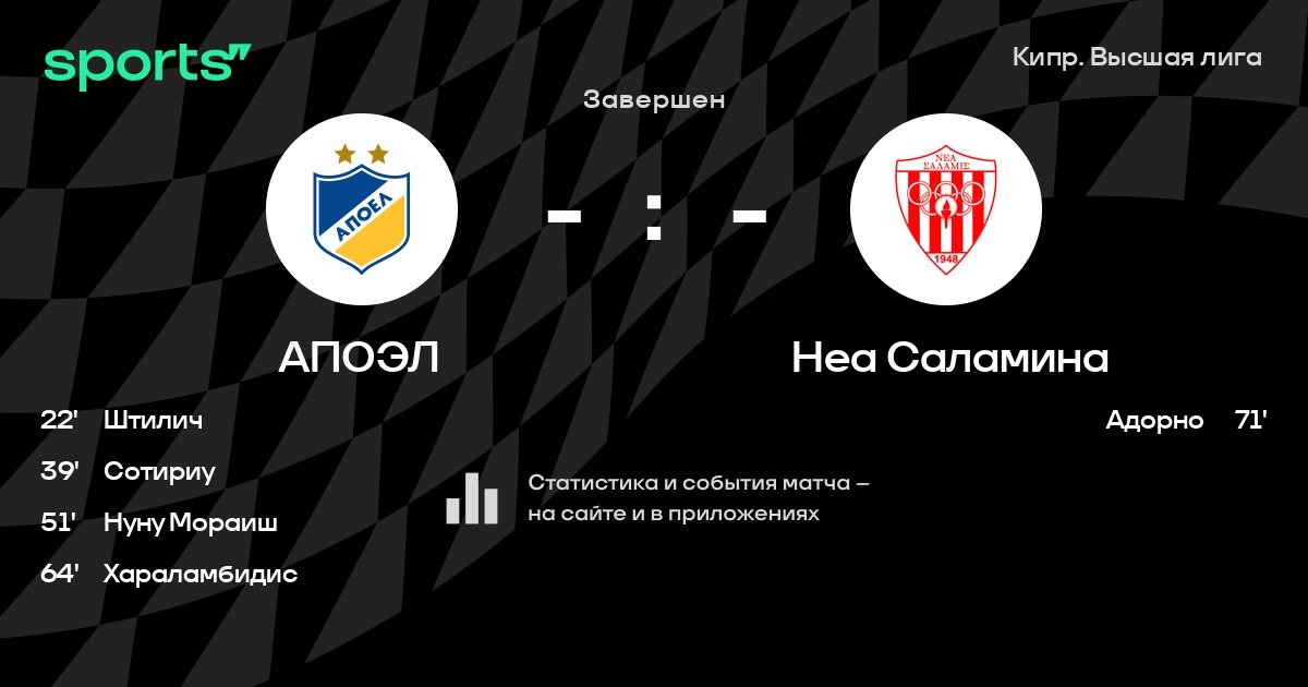Штейнбор - Андич, Гонсалвеш, Жаркович, Cinquini - Lemesios, Скопелитис, Гомеш, Христофи - Макриев, АдорноЗапасные: Михаил, Kezos, Kyriakou, Гримес, Бемба, Павлу, Чурьюрич, Colina, Кусулос, Лилиу, Дуку