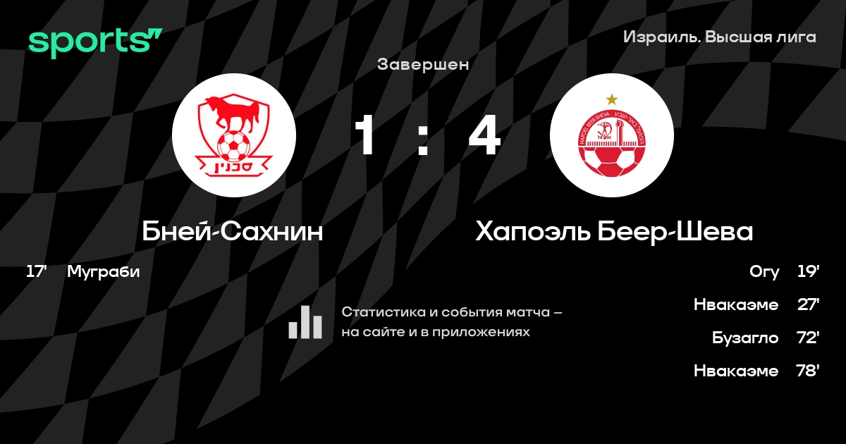 Гореш - Давидзада, Вильям, Охайон, Цедек - Огу, Бузагло, Меликсон, Хобан - Саар, НвакаэмеЗапасные: Левкович, Таа, Тургеман, Ради, Браун, Гадир