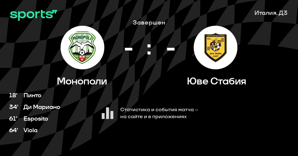 Писсери - Баккетти, Esposito, Luciani, Ferrara, Пинто - Romano, Tarantino, Viola - Ди Мариано, GambinoЗапасные: Pellegrino, Беи, Меркаданте, Castaldo, Джурич, Difino, Батталья, Ricucci, Лескано, Розафьо