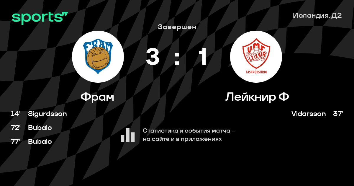 Layeni - Lárusson, Трастарсон, Magnusson, Тиллен, Йонссон - Birgisson, Bubalo, Þorláksson, Парлов, Sigurdsson - Запасные: Petursson, Траустасон, Pálsson, Гейрссон, Гудьонссон, Thorfinnsson