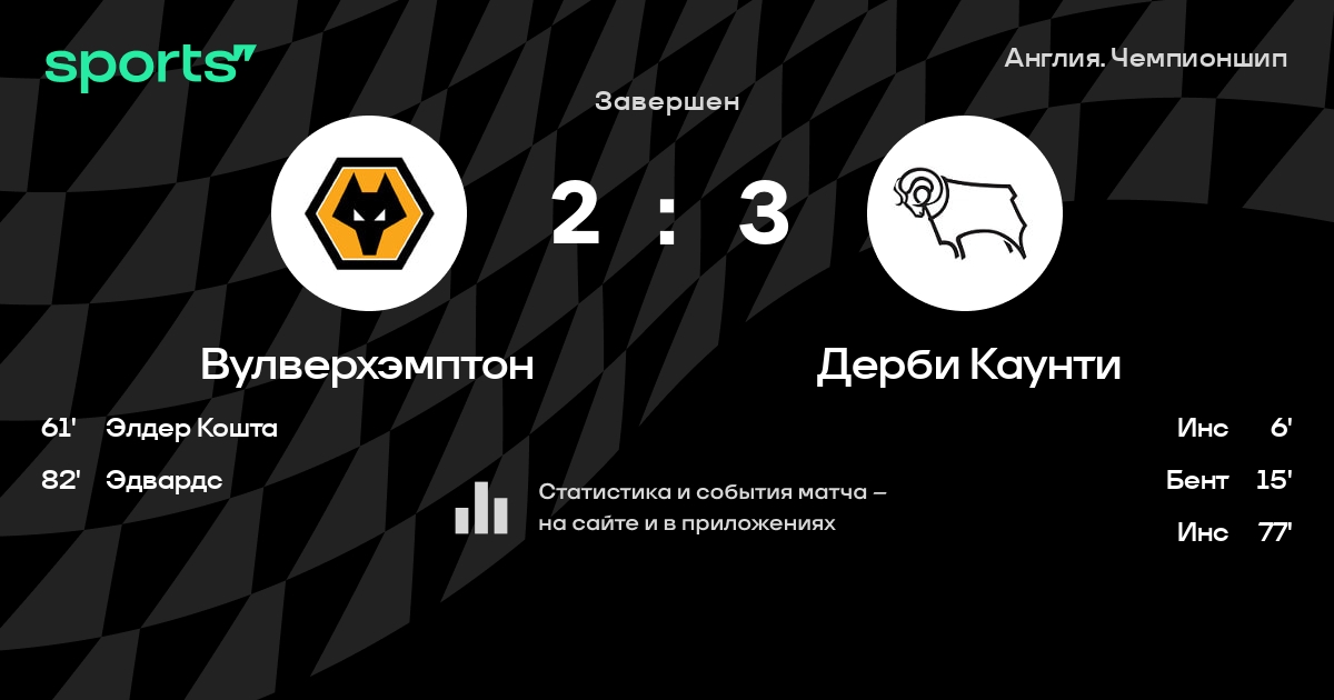 11 тур. Итоги матча Дерби Каунти - Вулверхэмптон