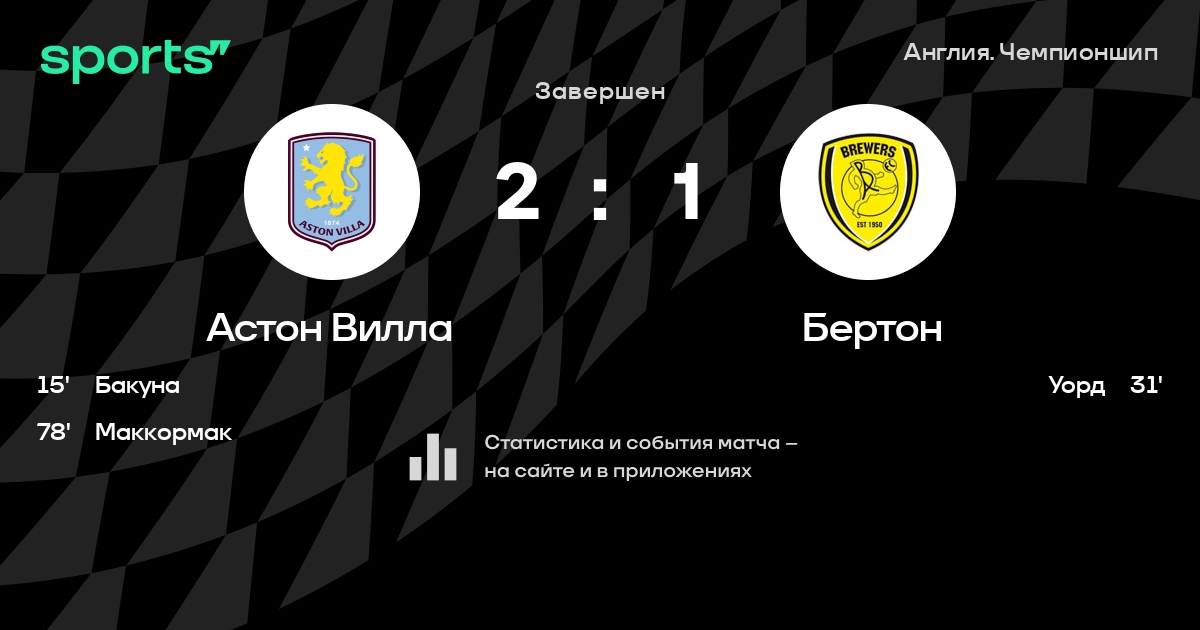 Трансляция Астон Вилла - Бертон
