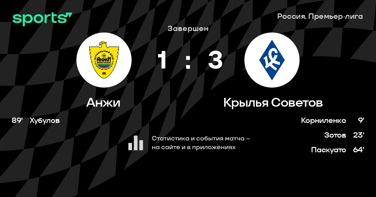 «Анжи» – «Крылья Советов» – 1:3. Гол Хубулова не спас хозяев от поражения