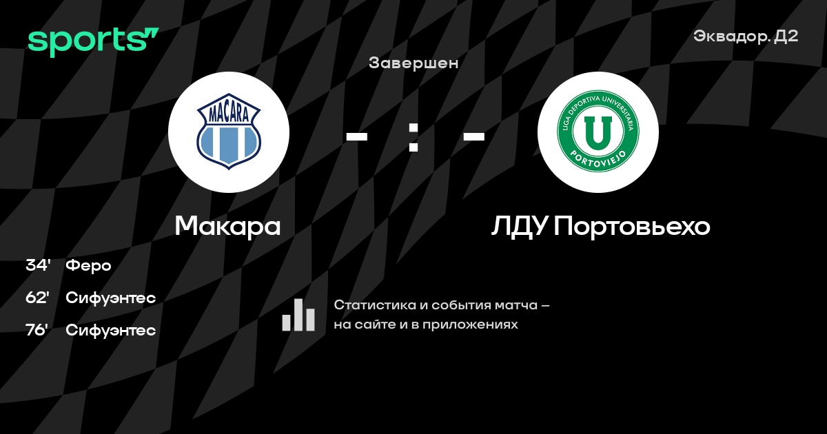 | 7 | ЛДУ Портовьехо | 44 | 15 | 12 | 17 | 42 | 51 | -9 | 57 | ||