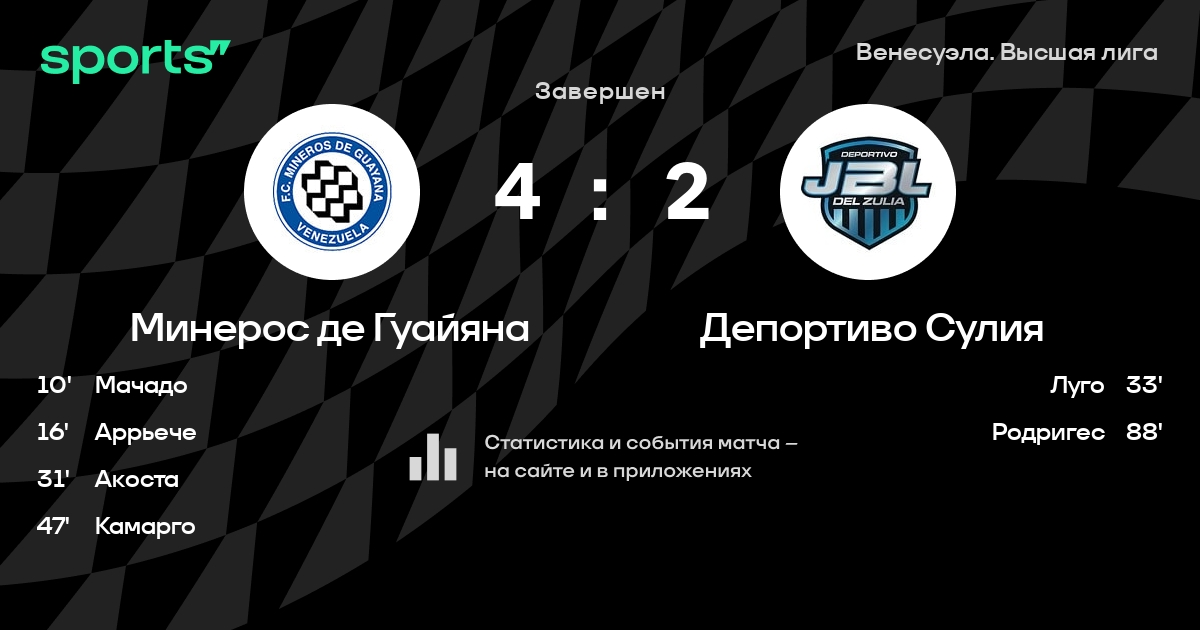 Минерос де Гуайяна - Депортиво Сулия: статистика матча