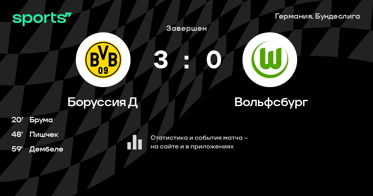 Бюрки - Шмельцер, Бартра, Гинтер, Пишчек - Ройс, Вайгль, Дембеле, Кастро, Шюррле - ОбамеянгЗапасные: Вайденфеллер, Пасслак, Геррейру, Дурм, Мерино, Пулишич, Кагава