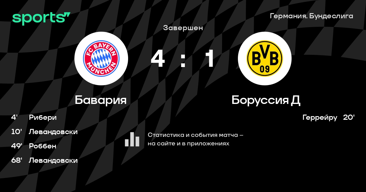 Ульрайх - Алаба, Дж. Боатенг, Мартинес, Лам - Видаль, Хаби Алонсо, Рибери, Алькантара, Роббен - ЛевандовскиЗапасные: Штарке, Хуммельс, Рафинья, Бернат, Дуглас Коста, Киммих, Коман